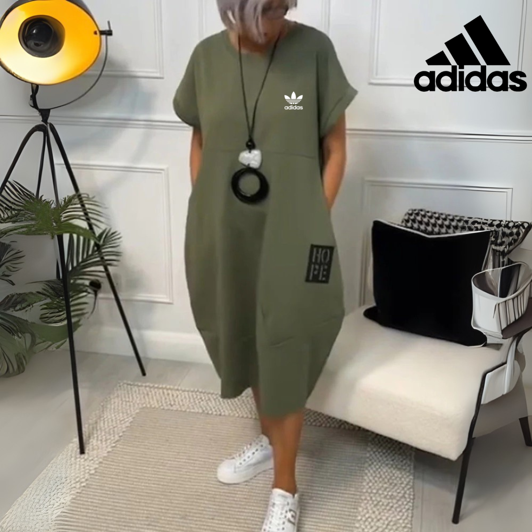 The AD® Hope Edition Tee Dress brings together comfort and a timeless aesthetic, ensuring you feel confident wherever the day takes you. Its relaxed drape allows freedom of movement while keeping a polished look, making it your go-to dress for both casual days and relaxed evenings.